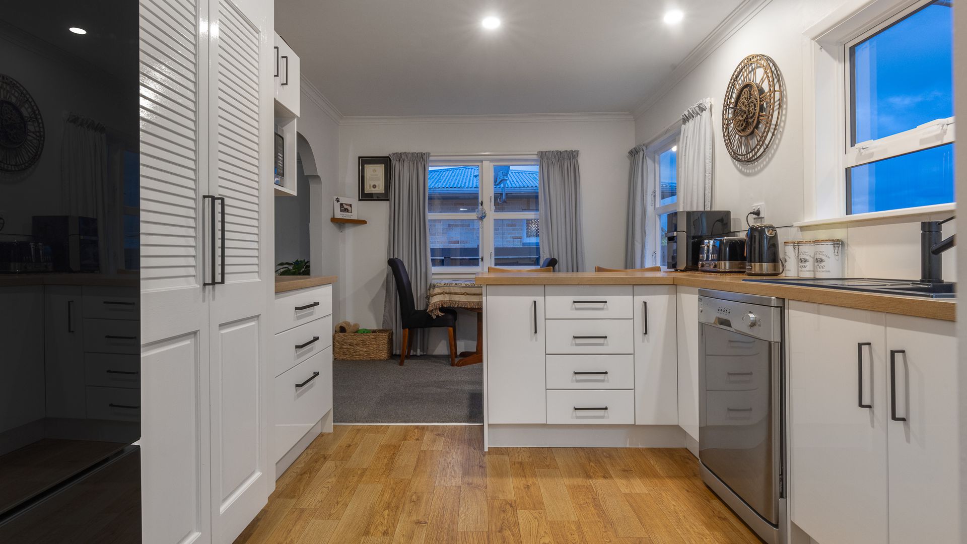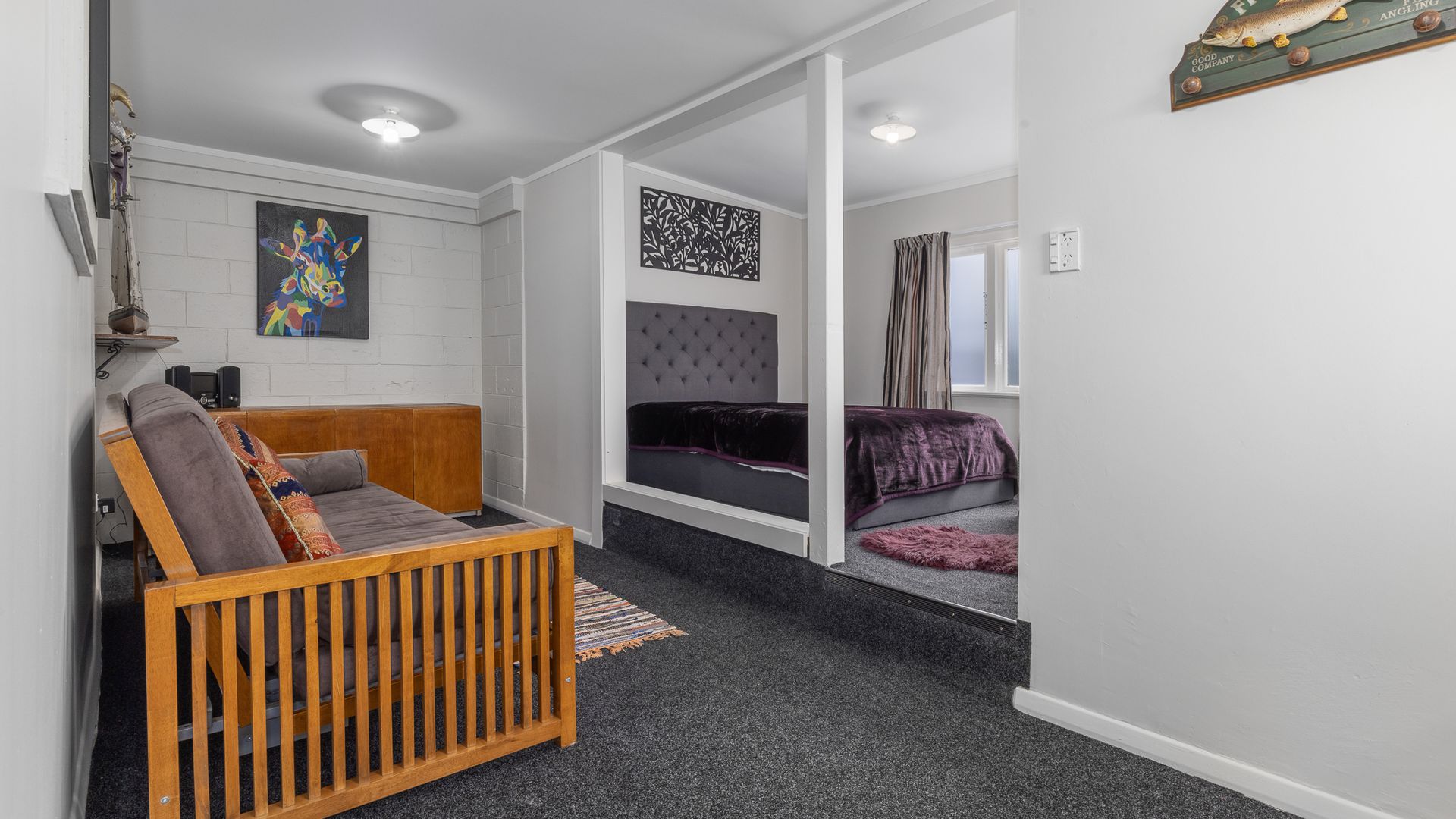 The double garage is carpeted and spacious, ideal for vehicles, a workshop, or hobbies. Adjoining the garage is a furnished studio, offering a versatile space for working from home, guests, creative projects, or extra income potential.