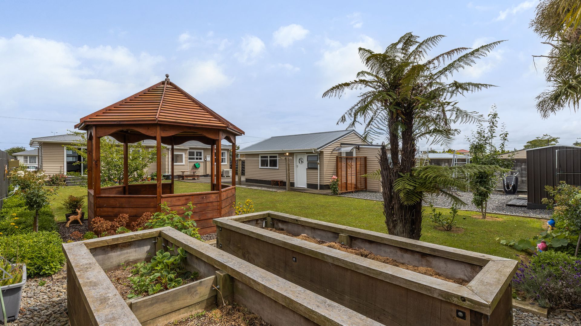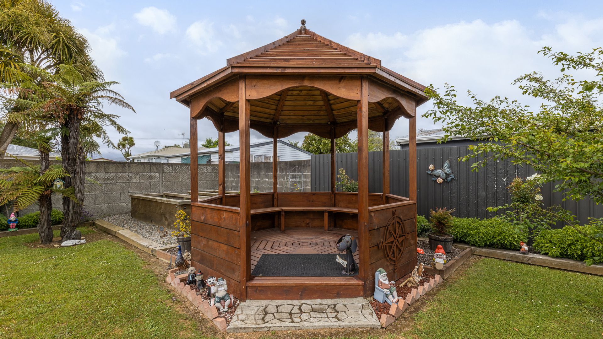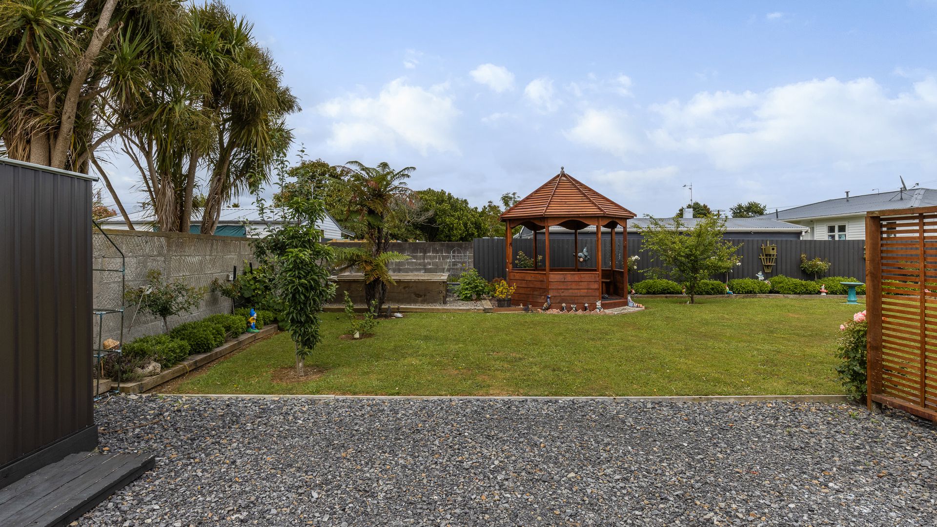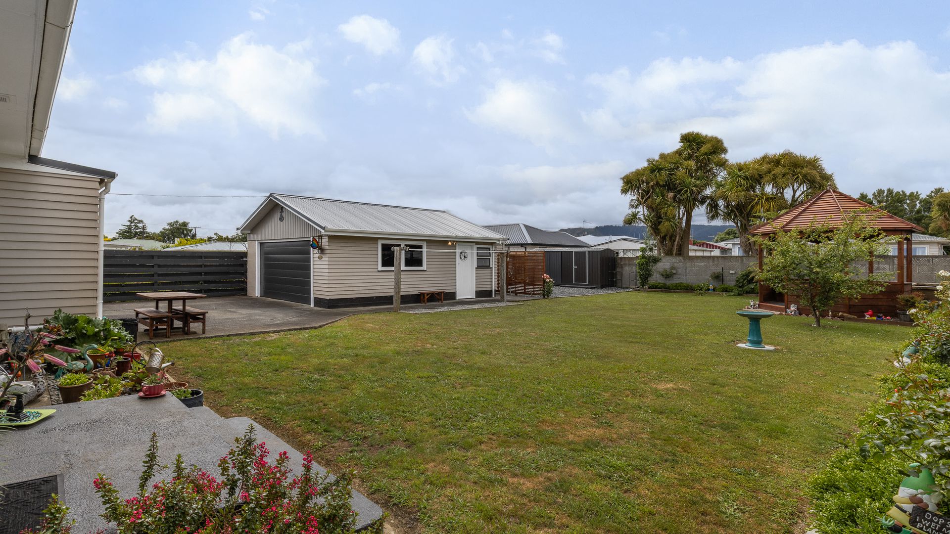 Outside is where this property really shines. The fully fenced rear yard features a gazebo for hosting friends or unwinding in the shade, plus two large garden sheds providing excellent storage.